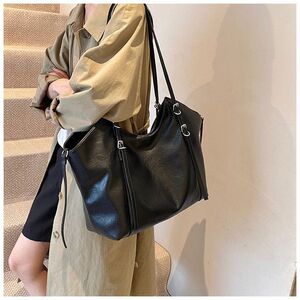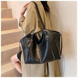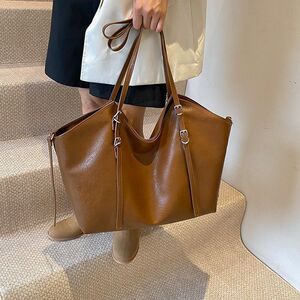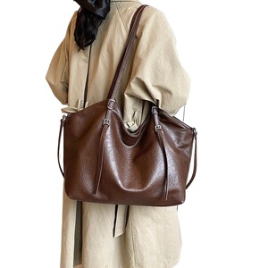 高级感复古百搭纯色托特包女士2025新款轻便大容量休闲通勤单肩包