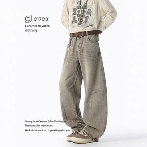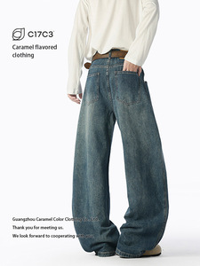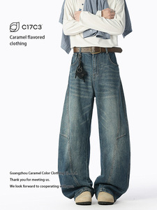 Caramel中性丨男女直筒弯刀裤高街拖地裤美式cleanfit水洗牛仔裤