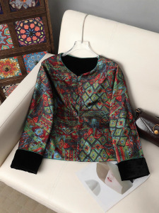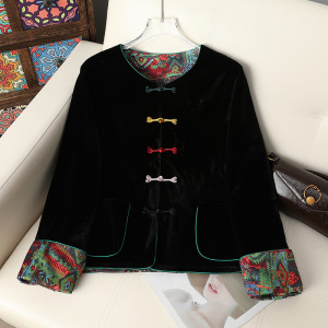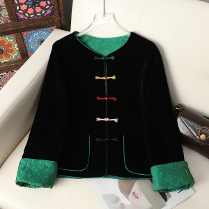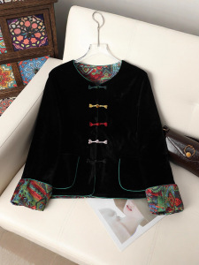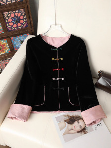 批发秋季新款中式国风丝绒双面穿外套复古款唐装外套彩色盘扣百搭