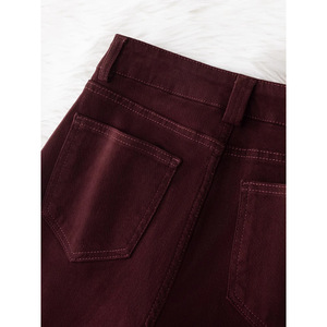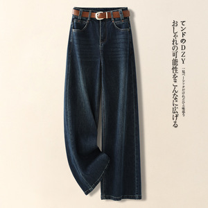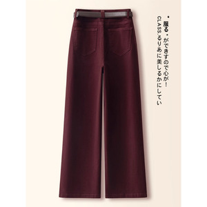 红色阔腿牛仔裤女秋季2025新款高级感显瘦拖地裤小个子窄版直筒裤