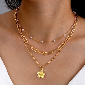 欧美跨境时尚热销简约花朵珍珠个性百搭女式街拍项链饰品时尚首饰