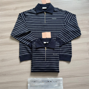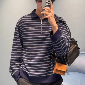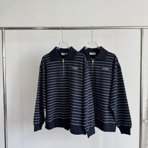 2025秋季半拉链新款条纹立领卫衣miu套头宽松海军蓝复古跨境代发