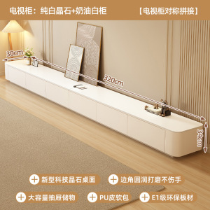 【奶油风免安装】3.2m六抽电视柜(奶油轻奢白+白柜软包)