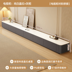 【上新-免安装】2.2m四抽电视柜(亮光轻奢白+灰柜软包)