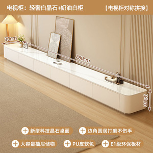 【奶油风免安装】2.2m四抽电视柜(亮光轻奢白+白柜软包)