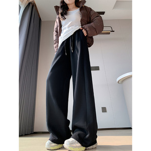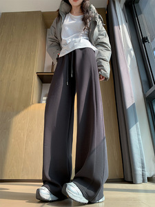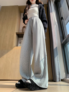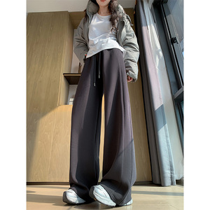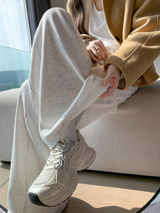 lulu同款白灰色运动裤女2025春夏窄版阔腿裤显瘦休闲宽松卫裤