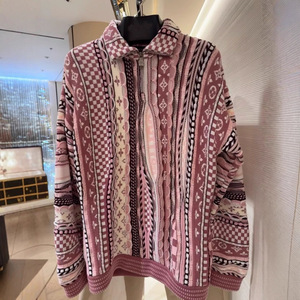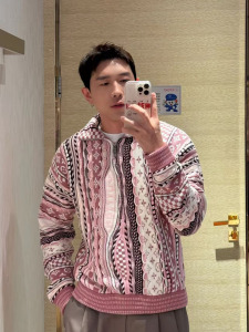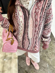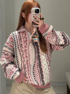 现货工厂25秋冬新款粉色嵌花拼接针织半拉链毛衣高品质实拍现货