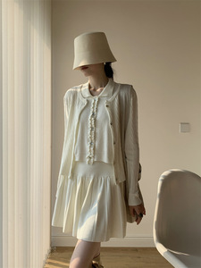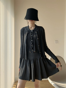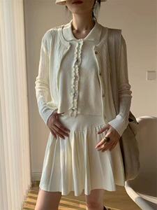韩系针织套装千金风无袖Polo马甲百褶短裙减龄穿搭麻花开衫三件套