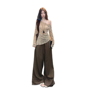韩系辣妹晕染不规则长袖针织衫抽绳休闲裤女2025春秋新款时尚套装