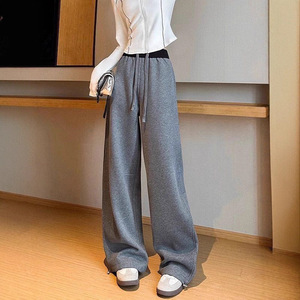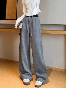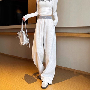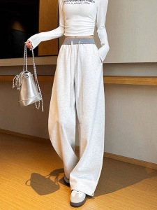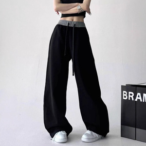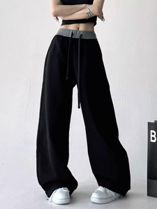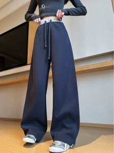 撞色高腰弯刀香蕉卫裤女秋季美式松弛感藏青色裤子束脚运动阔腿裤