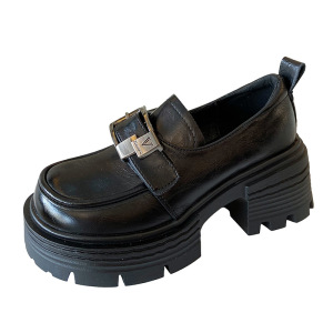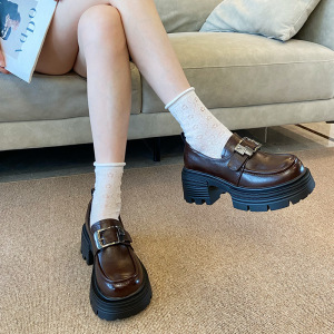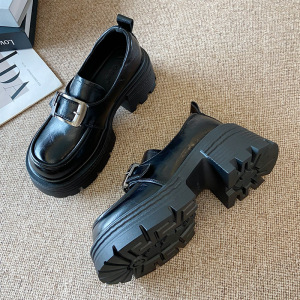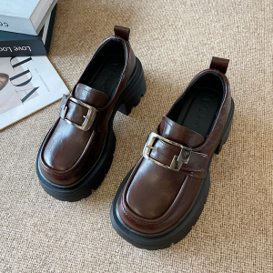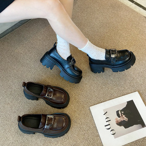 618-21英伦复古乐福鞋女2025新款小个子厚底小皮鞋高跟松糕单鞋女