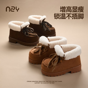 高帮雪地靴冬新款厚底加厚保暖系带毛毛棉靴鞋外穿舒适棉鞋女