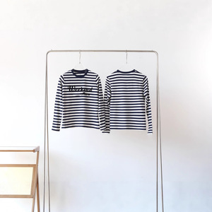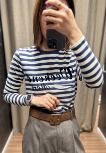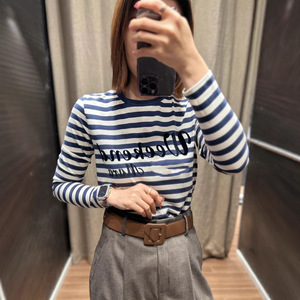 25秋新款max同款女装圆领棉质弹力修身静电植印花条纹休闲长袖T恤