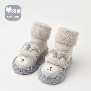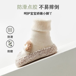 25冬季婴儿学步鞋软底毛圈加厚卡通小熊室内防滑点胶宝宝地板鞋袜