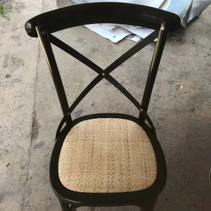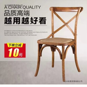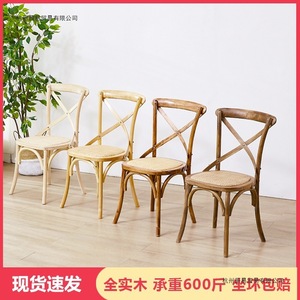 北欧美式实木藤编餐椅复古家用靠背简约原木餐桌休闲餐厅叉背椅子