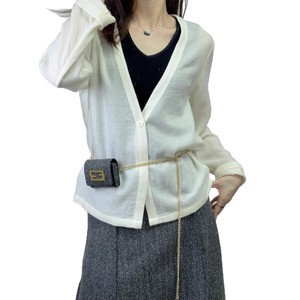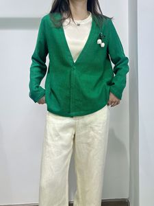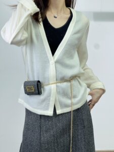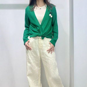 南油女装V领澳毛一粒扣开衫上衣25秋季新款宽松休闲羊绒长袖上衣