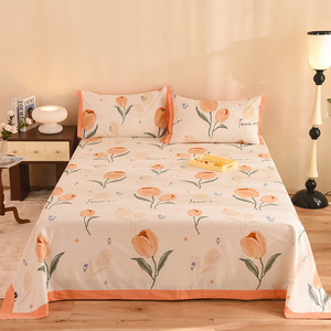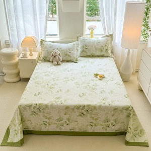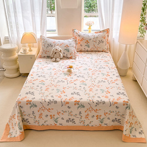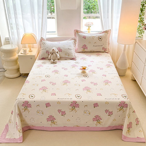 A类加厚纯棉磨毛床单单件100儿童清新花卉被单枕套三件套宿舍