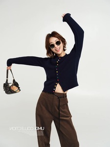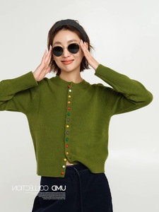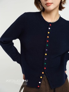 多盘彩扣设计/时髦宽松百搭软糯26支羊毛内搭打底针织开衫女