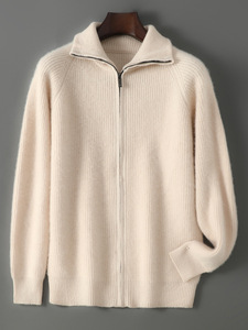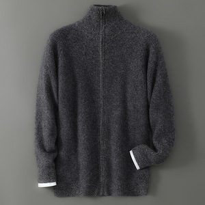 2025秋冬新款宽松针织开衫男士纯羊毛衫时尚商务加厚毛衣外套批发