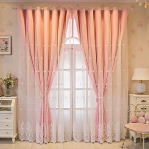 窗帘遮光布纱一体双层飘窗客厅卧室色田园简约现代绣花纱帘新款厂