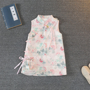 女童新中式秋季儿童国风改良盘扣无袖旗袍裙女孩中秋国庆演出服新