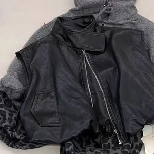 儿童套装2025秋款新品韩版男女童帅气皮马甲连帽毛衣豹纹裤三件套