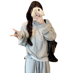 韩系穿搭配秋冬季新款灰色休闲时尚运动卫衣套装女装一整套装女装