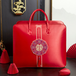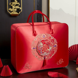 批发结婚陪嫁收纳袋婚庆四件套红色喜被装棉被的包装袋子缎面牛津
