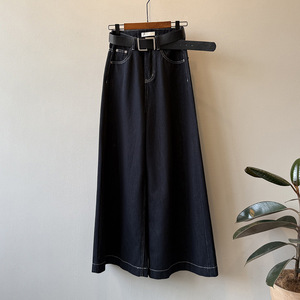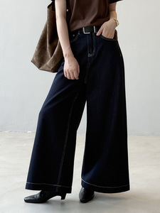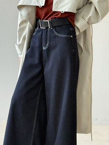 言双 复古直筒牛仔裤女秋季设计感宽松拖地休闲阔腿裤含腰带33111