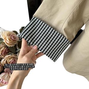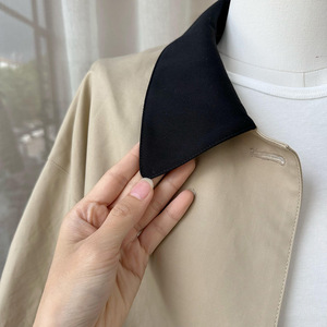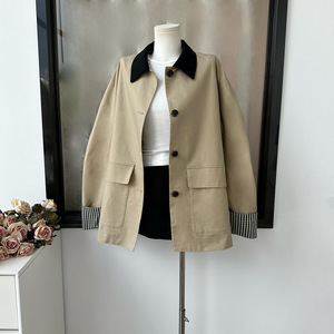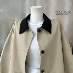 高智巴恩风 卡其色风衣撞色格纹拼接短款宽松外套女秋