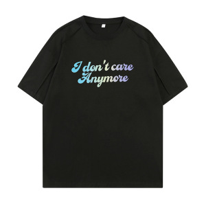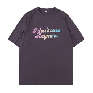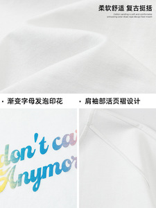 美式渐变字母印花短袖T恤男夏季款纯棉宽松体恤活页打褶情侣半袖q