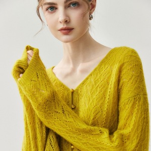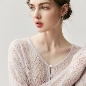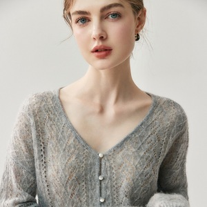 轻奢简约空气感桑蚕丝羊绒开衫女V领慵懒风减龄针织衫外套上衣女