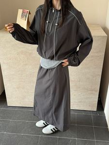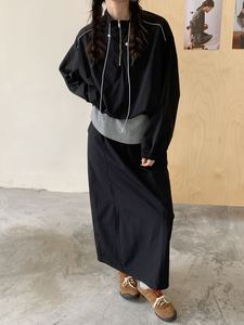 韩系新款ins风运动休闲假两件半拉链套裙宽松设计抽绳套装ZG