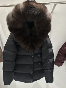 欧洲站新款2025狐狸大毛领连帽中长款羽绒服女气质通勤款保暖外套
