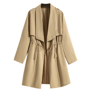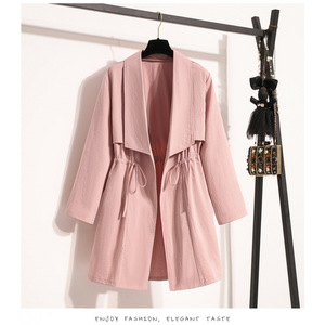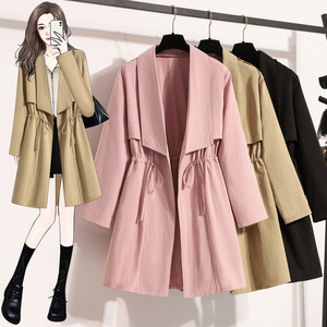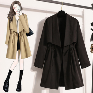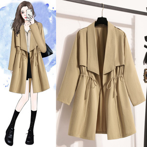 时尚设计感大码抽绳休闲风衣外套女胖mm中长款百搭宽松秋季上衣潮