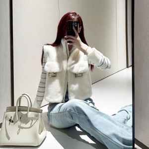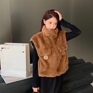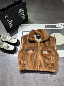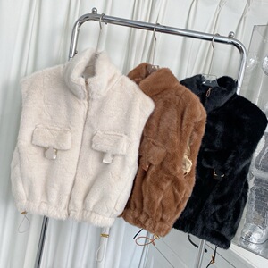 2025冬季FF新款️抽绳下摆拉链短款高领棉服休闲马甲毛绒气质百搭