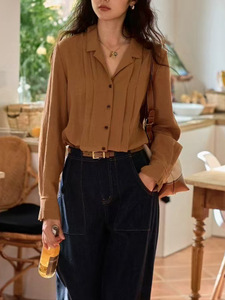 solighte 法式古巴领长袖衬衫女秋季垂感衬衣