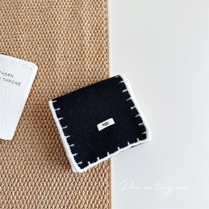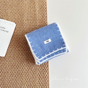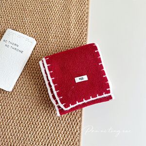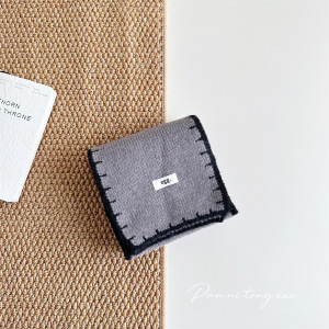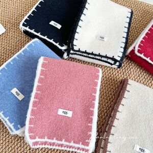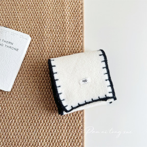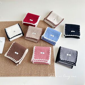 韩系氛围感儿童围巾锁边纯色带标秋冬男女宝保暖针织毛线围巾围脖