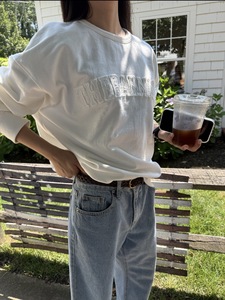 韩国设计师th*barnnet八奶家白卫衣韩系女装字母套头宽松上衣