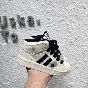 潮牌儿童贝壳头高帮板鞋秋季新款皮面男女童百搭防滑运动鞋休闲鞋