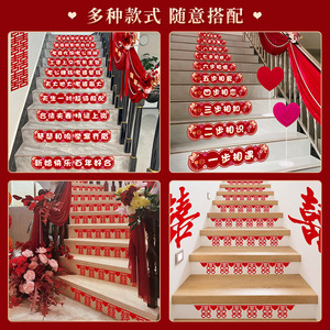 结婚楼梯扶手装饰感新年婚庆台阶婚房布置简单墙面转角气球