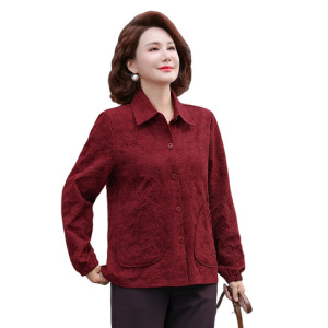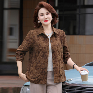 2025新款中老年女洋气翻领减龄衬衫上衣中年妈妈秋装薄款夹克外套