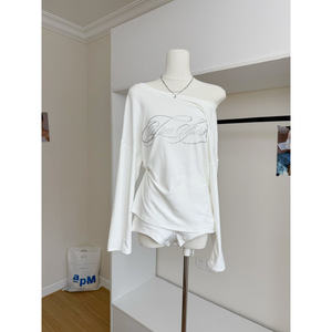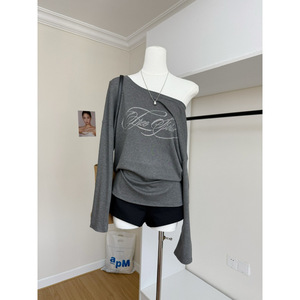 熹凤梨2025秋季新款烫钻印花多穿慵懒随性长袖T恤上衣女