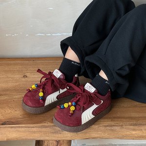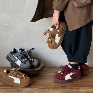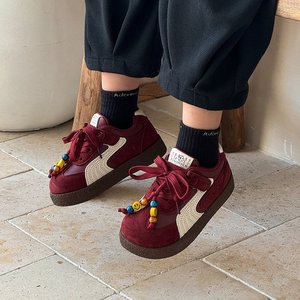 韩版女童鞋2025秋季新款儿童运动鞋低帮板鞋软底红色中大童德训鞋