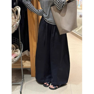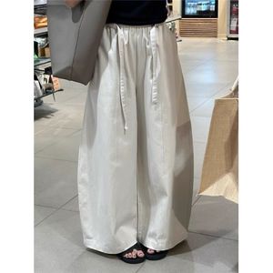 设计感抽绳纯色高腰休闲裤女装2025秋季新款宽松显瘦弯刀裤九分裤