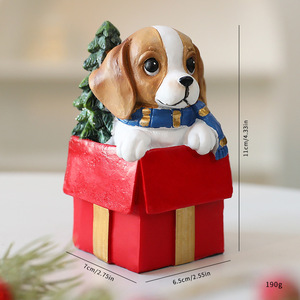 外贸圣诞小狗树脂小摆件 圣诞节橱窗室内办公桌可爱小狗摆设现货