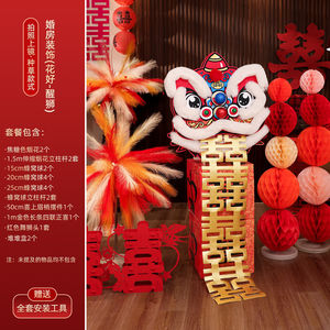 结婚醒狮布置婚房客厅狮子头摆件女方晨袍拍照道具婚庆用品大全