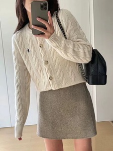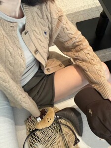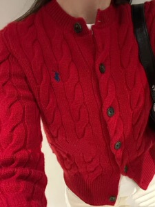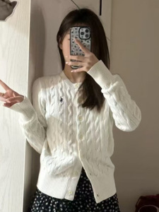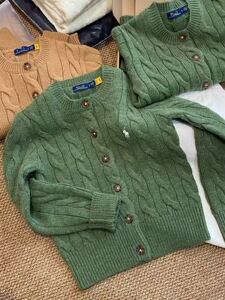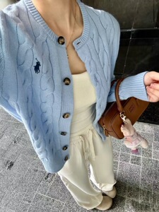 可扫码RL拉夫刺绣战马标粗麻花针织开衫时尚经典款圆领绞花毛衣女