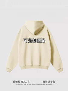 珍珠棉重磅短款连帽卫衣boxy潮牌高级感宽松纯色美式帽衫外套男女