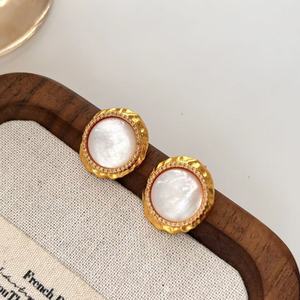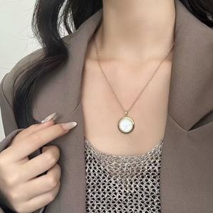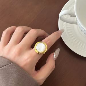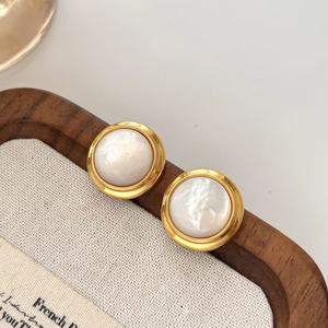 新款小众气质时尚圆形白贝母耳钉戒指项链精致简约小巧百搭耳饰女